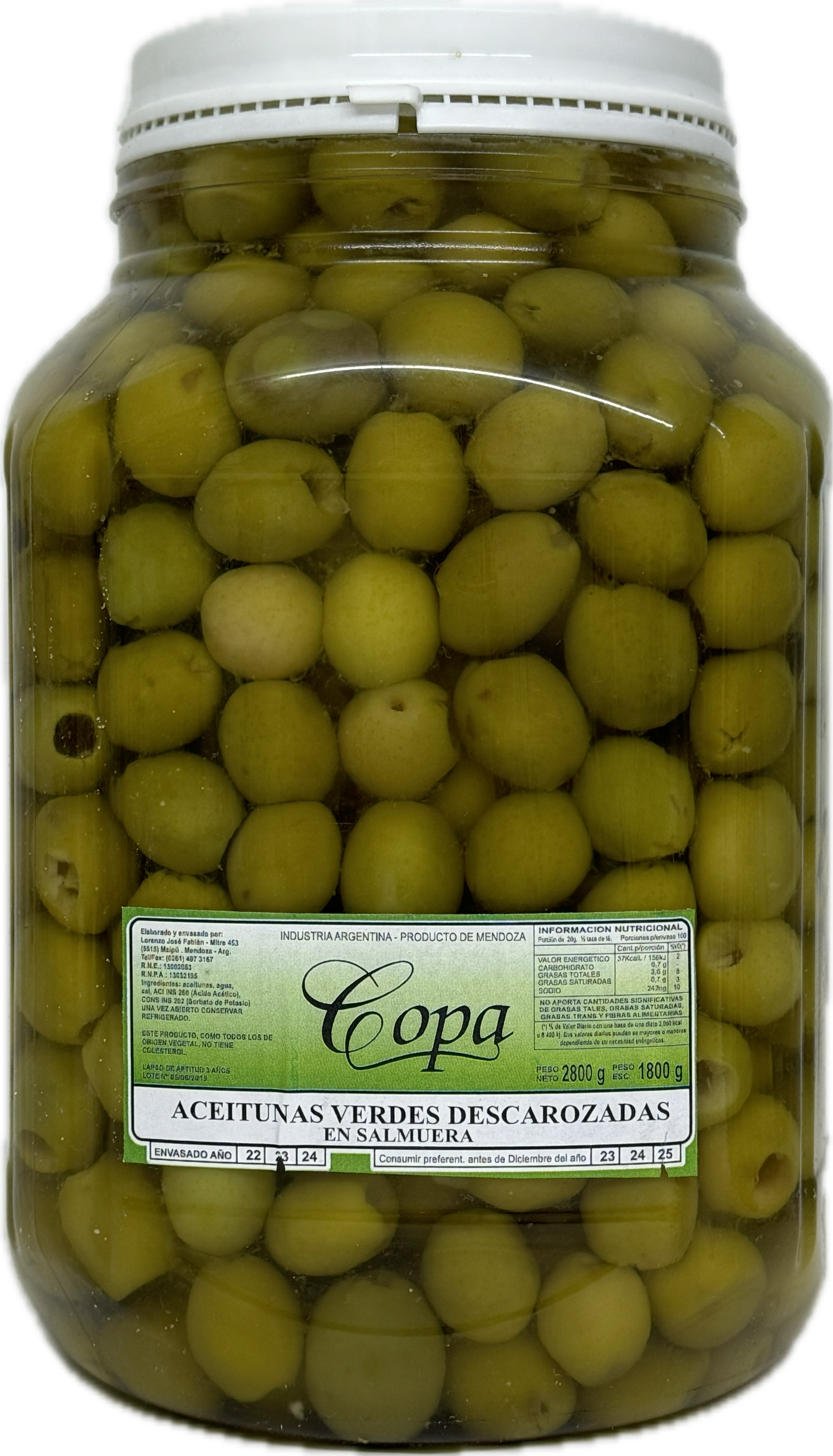 Peso Escurrido 1800 g / Peso Neto 2800 g